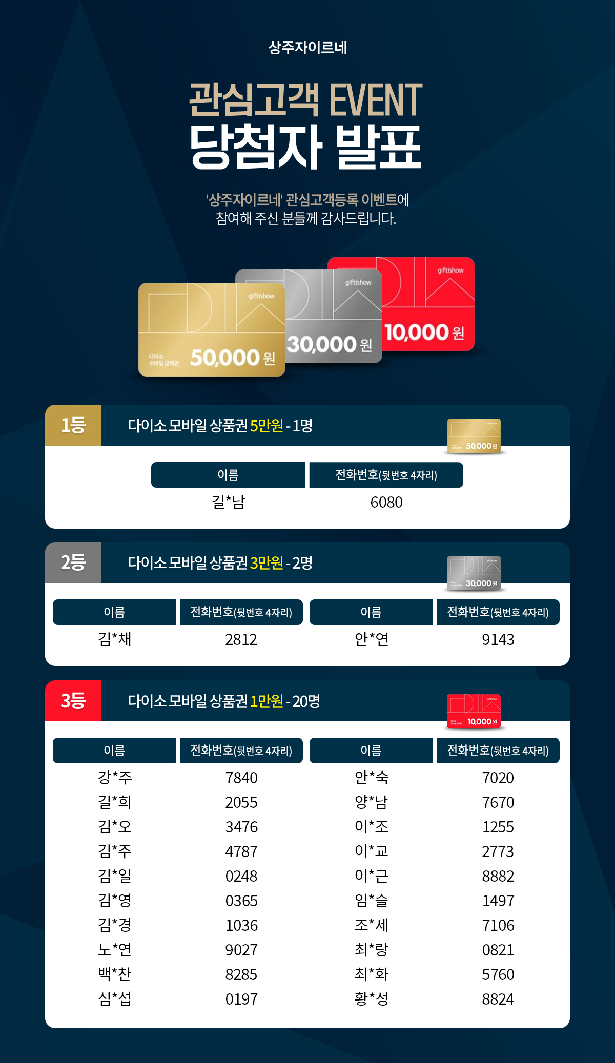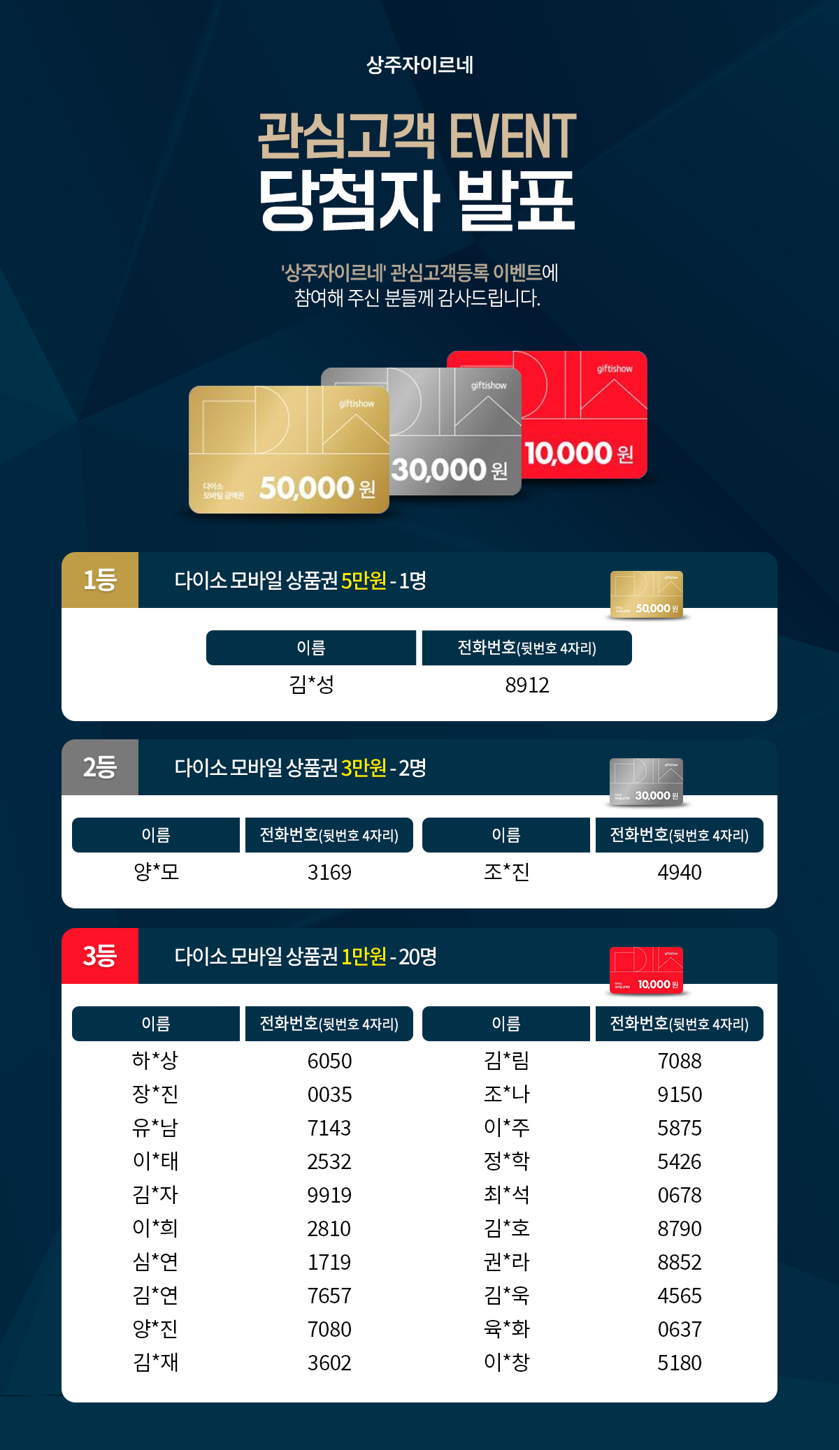 3차 이벤트 당첨자
