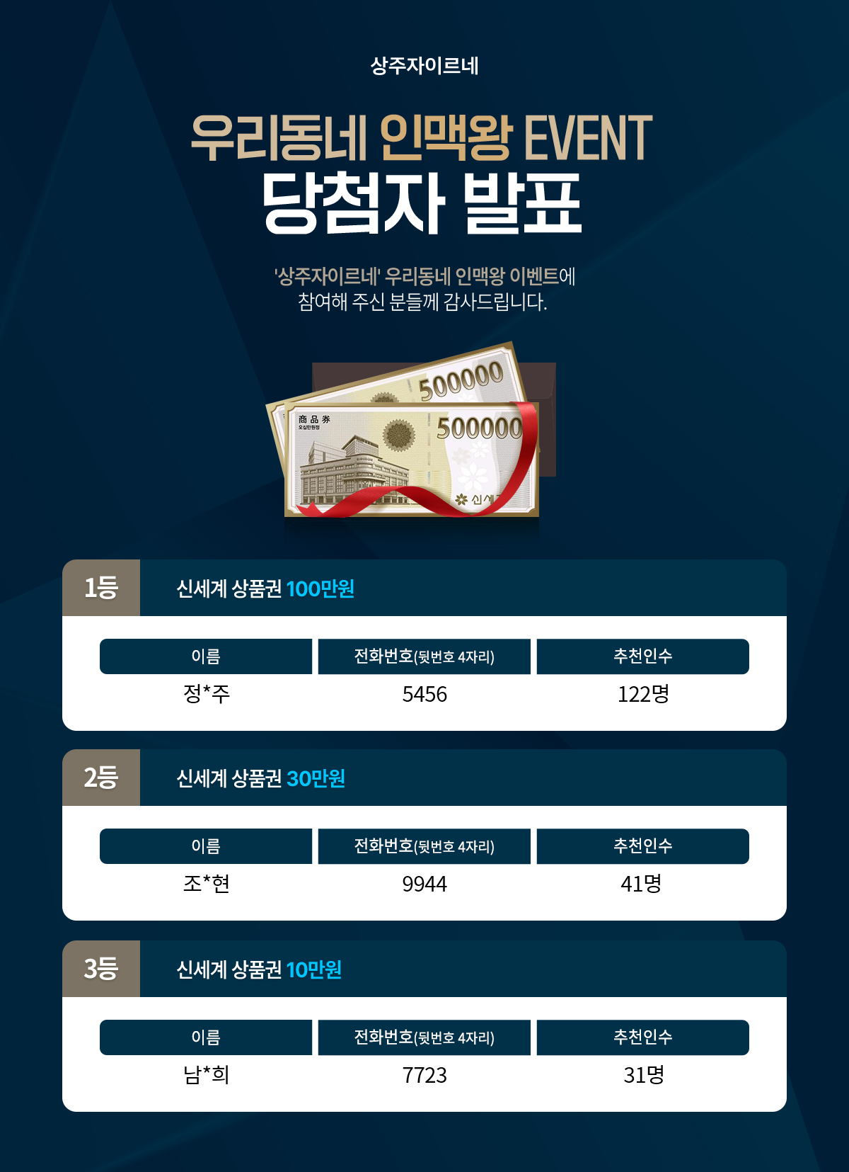 인맥왕 이벤트 당첨자
